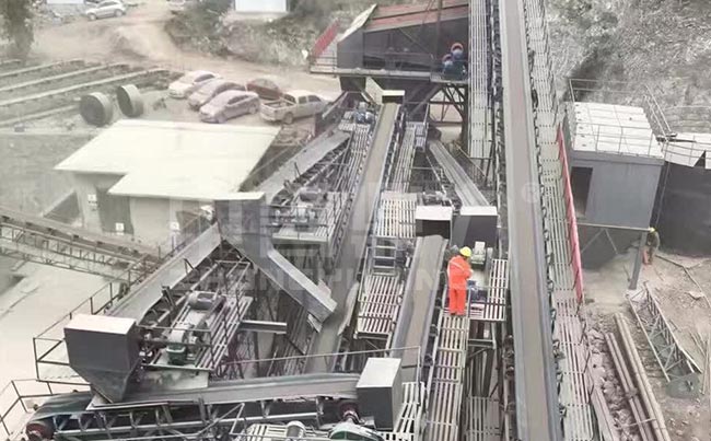 主要設備:ZGC1550P振動給料機、PCZ1820重錘式破碎機、PC1826整形破碎機、VSI1263沖擊式制砂機、3YKZ3070三層振動篩、2YKQ2470雙層振動篩、皮帶輸送機