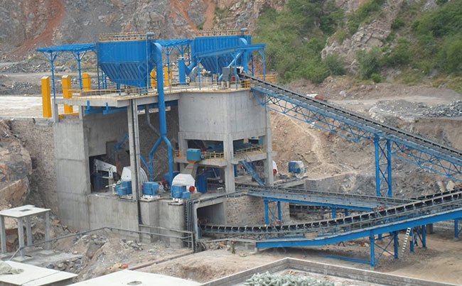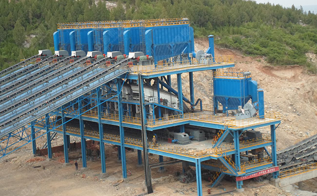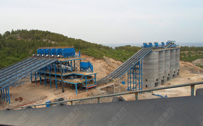 主要設(shè)備:振動(dòng)給料機(jī)ZG2050*1臺(tái)、重型錘式破碎機(jī)PCZ1820、PCZ1620、圓振動(dòng)篩3YK3070*4臺(tái)、2YKZ3070*1臺(tái)、DMCA除塵器5臺(tái)