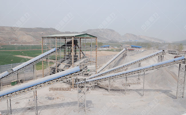 在生產(chǎn)現(xiàn)場我們可以看到,骨料通過道破碎機(jī)進(jìn)行初步破碎后,然后不合格的骨料經(jīng)過回料破碎機(jī)進(jìn)行再次破碎,可以達(dá)到較好的粒形,后期此條砂石骨料生產(chǎn)線將會進(jìn)行再次改造,增加除塵設(shè)備及采取要的除塵設(shè)施,可以大大提高砂石骨料生產(chǎn)線的環(huán)保性。
