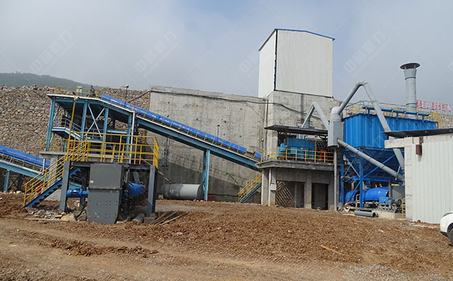 主要設備:振動給料機、重錘式破碎機、錘式整形機、圓振動篩等。