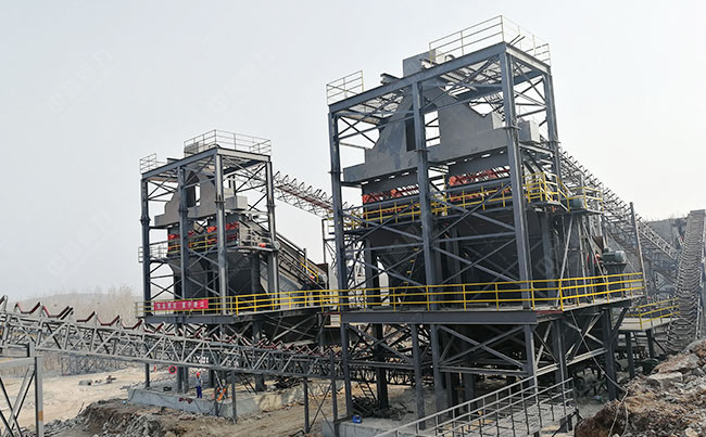 主要設(shè)備:振動給料機(jī)、重錘式破碎機(jī)、錘式碎石機(jī)、振動篩、皮帶輸送機(jī)等。