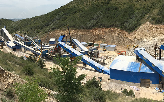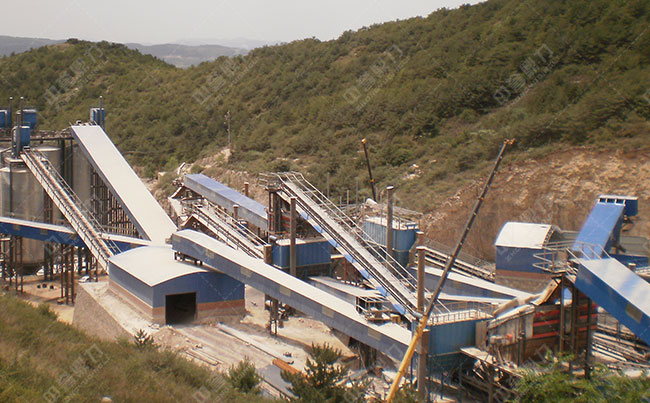 主要設備:震動給料機、重錘式破碎機、錘式破碎機、制砂機、圓振動篩等。