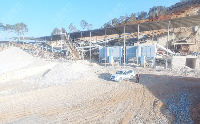 這條石料廠是由中譽鼎力提供設備以及相關的建設承包,地址位于四川涼山州,項目于2015年12月正式完工并開始投產,運行中的生產線每小時產量在150噸。生產線雖然沒有進行封閉,但是在產線上方進行鋼結構覆蓋,減少惡劣天氣給設備帶來的損傷,同時在破碎、篩分環節加裝了除塵器設備,從源頭減少了粉塵的產生,很好的保障了產線的生產環境。
