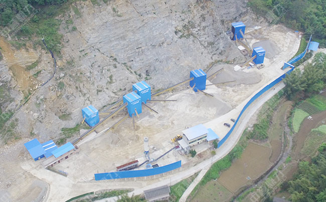 這條環保型石子破碎加工生產線地點位于四川宜賓,由中譽鼎力提供全套所需設備以及整體的建設服務,項目于2018年4月正式完工斌開始投產,運行中的生產線每小時產量在200噸左右。生產線整體對設備進行了封閉措施,除進料皮帶以及出料皮帶外沒有留開口,減少了產線的粉塵外溢現象,同時產線采用智能管理系統,在管理室便可以啟停設備,方便快捷。
