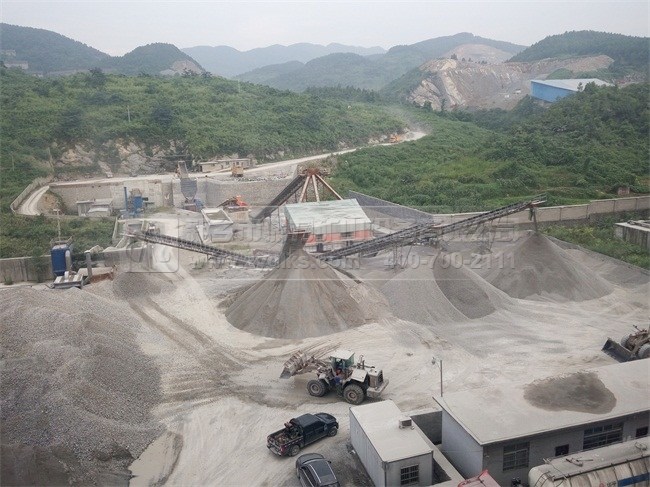 先從山上爆破下來的石頭通過喂料機均勻地喂入錘式破碎機初步破碎,經粗碎后的成品通過皮帶輸送機輸送至反擊式破碎機進一步破碎,二次破碎后的石料通過皮帶輸送機輸送至振動篩篩分出不同規格的石子,滿足客戶粒度要求的石子通過皮帶輸送機輸送至成品料堆,不合格的石子通過皮帶輸送機重新返回至反擊式破碎機再次破碎,形成閉路多次循環完成。
