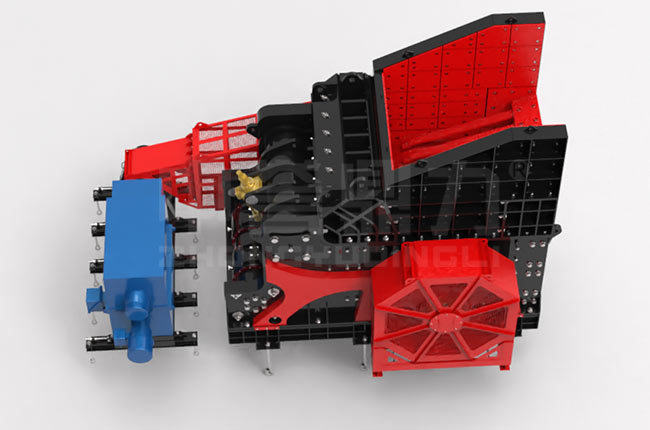喂料口尺寸B為:B=(1.1~1.25)Dmax,其中Dmax是原料的大粒形尺寸,破碎機排礦口尺寸可依據已知粉碎比i按下式求得:b=0.85i。臥式旋回破碎機的粉碎比,對直線形粉碎腔為5.35~7.6,曲線形粉碎腔約為6.75~9.5之間,平均可達7.9.